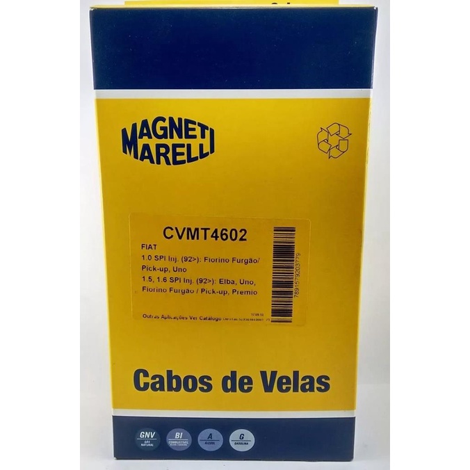 Jogo de Cabo CVMT-4602 Magnet Marelli+ Vela Magneti MArelli Aplicacao: Duna 1.6 8v/ i.e Gasolina Desde 1995 Elba 1.5 8v/ Spi- Injecao Gasolina De 1992 a 1996 Elba 1.6 8v/ Spi- Injecao Gasolina De 1994 a 1996 Fiorino 1.0 8v/ Carb./ Inj. Gasolina De 1993 a 1996 Fiorino Pick-up 1.0 8v/ Carb./ Inj. Gasolina De 1993 a 1996 Fiorino 1.5/ Inj. Gasolina Desde 1992 Fiorino Pick-up 1.5 Inj. Gasolina Desde 1992 Fiorino 1.6/ Inj. Gasolina Desde 1993 Premio 1.5/ Inj. Gasolina Desde 1992 Premio 1.6/ Inj. Gasolina Desde 1992 Uno 1.0 Carb./ 1.0 i.e./ Mille Gasolina De 1993 a 09/2001 Uno 1.5/ i.e Gasolina Desde 1992 Uno 1.6/ i.e. Gasolina Desde 1992 Uno Furgoneta 1.5 i.e. Gasolina Desde 1992 Cabo de Vela + Vela Magneti Marelli - Produto Original Antes de efetuar a compra tire suas duvidas no campo de pergunta!