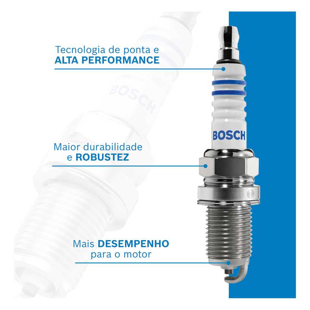 Kit Cabo e Vela de Ignição Original Bosch Fiat Fiorino Furgão 1.3 MPI 8V Flex 01/2007 a 12/2013 Kit composto por: 1 – Cabo de ignição Original Bosch. Número do cabo: F00099C130 4 – Velas de ignição Originais Bosch. Número da vela: F000KE0P07 / SP7 Aplicação: Fiat Fiorino Furgão 1.3 MPI 8V Flex Ano: 01.2007 - 12.2013 Potência: 70-72 Motor: 178 E9.011 Fire Combustível: Flex ATENÇÃO! Não nos responsabilizamos pelo mau uso ou instalação indevida do produto. Recomendamos que procure um profissional especializado para instalação/manutenção do kit de Cabo e Vela Originais Bosch. Seja qual for o combustível, GNV, gasolina ou etanol a vela é Bosch. As velas de ignição Bosch atendem totalmente aos requisitos dos motores GNV e flex. Com liga de níquel-ítrio e eletrodo massa perfilado com perfil em V, a vela Bosch proporciona ganhos na operação e no rendimento do motor, seja qual for o combustível. Tecnologias exclusivas que proporcionam alta performance às velas Bosch: Instalação das velas – Procedimento Recomendamos que procure um profissional especializado para instalação/manutenção. 1 - Verificar a correta aplicação da vela, utilizando a tabela de aplicações. 2 - Com o motor frio, remova o cabo de ignição. Não faça esforço lateral para remover o cabo. Apenas puxe-o pelo terminal e não pelo fio. 3 - Solte a vela de ignição e limpe o assento de vela no cabeçote. 4 - Rosqueie a nova vela de ignição até seu assentamento. 5 - Aplique o torque recomendado para sua vela conforme indicado na caixa do produto ou na tabela de torque da página seguinte. Sempre dê preferência ao uso de um torquímetro para aperto. O uso de ângulo de aperto é apenas um valor de referência aproximado. *Importante: torque acima ou abaixo do especificado pode danificar a vela e/ou o motor. 6 - Conecte o cabo de ignição. 7 - Repita o procedimento para as demais velas de ignição. Cabos de ignição PREMIUM Bosch Diferenciais Bosch garantem maior qualidade e durabilidade - Maior espessura da parede: Alta isolação elétrica e térmica para maior durabilidade. - Materiais nobres na construção: Garantem melhor condutividade elétrica. - Terminal crimpado: Sistema de fixação que não danifica os filamentos do condutor, garantindo uma maior durabilidade e eficiência do produto. - Exclusivo design dos terminais: Encaixe perfeito da bobina e da vela evita oxidações, fugas e ressecamentos, aumentando a vida útil. - Conectores 100% de silicone: Maior resistência a altas temperaturas e diferentes tipos de combustível, inclusive GNV. - Mesma construção do equipamento original: Garantia de funcionamento sem falhas. Capa do cabo e do conector da vela - Excelente isolação elétrica e ignição sem falhas. - Suporta condições extremas de uso, como altas temperaturas e alta tensão. - Resistente ao contato com álcool, gasolina, fluido de freio, óleo do motor e ambiente salino (regiões litorâneas). - Não perde a flexibilidade. Capa metálica - Em respeito à política de preservação ambiental e à saúde do consumidor, os produtos fabricados pela Bosch não utilizam substâncias perigosas, como mercúrio, chumbo, cromo hexavalente (Cr6+) e cádmio. Capa do conector da vela e da bobina - Excelente isolação elétrica e ignição sem falhas. - Suporta condições extremas de uso, como altas temperaturas e alta tensão. - Resistente ao contato com álcool, gasolina, fluido de freio, óleo do motor e ambiente salino (regiões litorâneas). - Não perde a flexibilidade. Núcleo do cabo - Apresenta melhor condução da alta tensão produzida pela bobina, proporcionando perfeita combustão, sem fuga de tensão. - Elimina as interferências veletromagnéticas, gerando melhor funcionamento dos componentes eletrônicos do veículo. Garantia de peça original - Inscrição das logomarcas Bosch e PREMIUM estampadas no cabo garantem a autenticidade do produto. Cuidados no manuseio - Nunca puxe pelos próprios cabos. - Puxe-os pelos terminais. - Pressione os terminais para obter encaixe perfeito. Boas Compras!