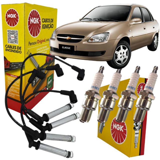 Kit Cabo + Velas NGK - Celta Corsa Classic 1.0 8V Flex 2011 2012 2013 2014 2015