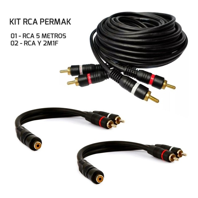 # OESTESOM # Características: - cabo emborrachado - alta flexibilidade - para instalação em módulos som auto motivo, audio e video - marca Permak Itens: 01 - Cabo RCA 5 metros 02 - Cabos RCA Y 2m1f Importante: A *OESTESOM* recomenda que a instalação seja feita por profissional especializado e não se responsabiliza pelo mau uso do produto.