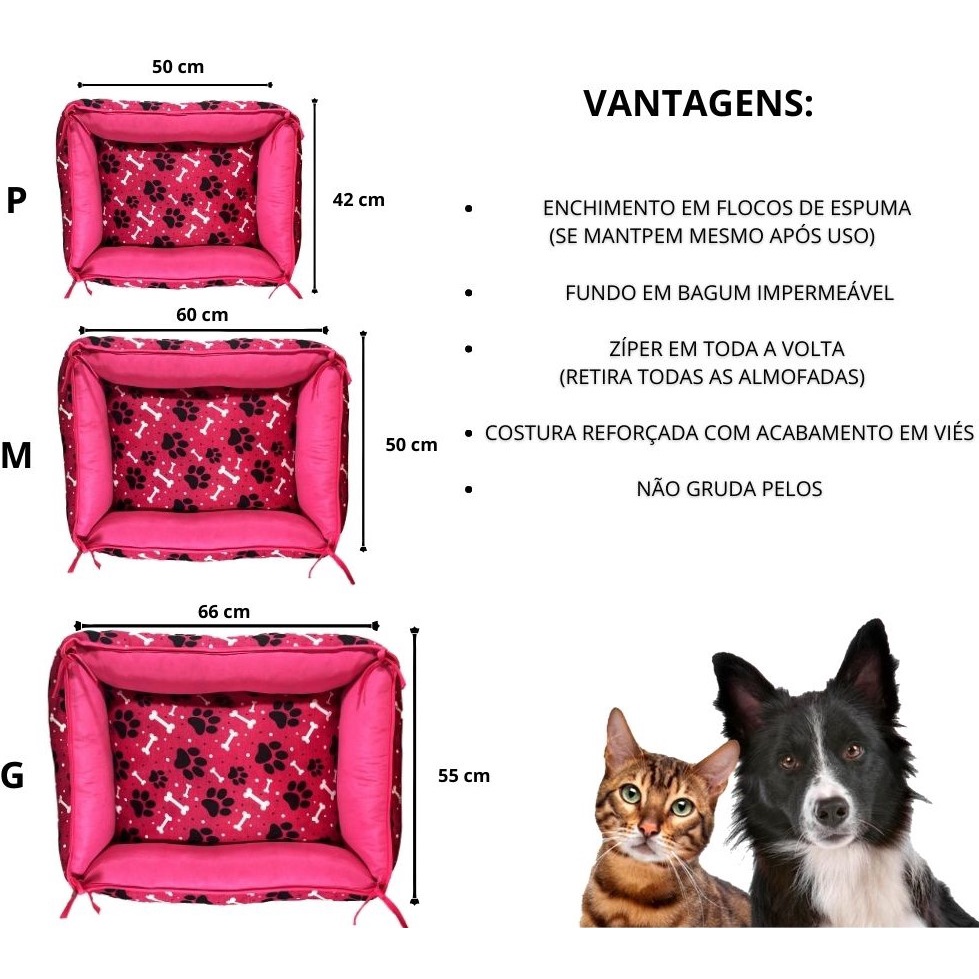 PRODUTO PRONTA ENTREGA PRODUTOS ORIGINAIS E COM NOTA FISCAL. KIT CAMA COM TAPETE SANITÁRIO BEBEDOURO COMEDOURO Ao escolher P, M ou G apenas a caminha muda o tamanho! Esse kit é perfeito para você que já tem ou vai ter um amigão de 4 patas em casa, ele possui o essencial para dar uma qualidade de vida para seu pet e bem estar para você. Essencial e Necessário para seu lar, seja casa, apartamento, chácara, em qualquer ambiente. Nossa Caminha é confortável, com fechamento em viés, com fundo escuro, costuras com zíper e impermeável. Medidas Cama: ESCOLHER TAMANHO DA CAMA ANTES DE EFETUAR A COMPRA! P: 50 cm de Comprimento x 42 cm de largura x 15 cm de altura M: 60 cm de Comprimento x 50 cm de largura x 15 cm de altura G: 66 cm de Comprimento x 55 cm de largura x 15 cm de altura OBS: Altura da cama pode variar até 2 cm. O Tapete Sanitário Canino Higiênico é essencial para manter um ambiente limpo e organizado, pode ser usado com ou sem fralda/jornal no compartimento, fácil limpeza e com travas. Medidas Sanitário: 57 cm de comprimento x 43 cm de Largura x 3 cm de altura Também acompanha 2 Comedouros/Bebedouros, essencial para segurança do alimento do pet, com capacidade de 300ml. (Formato e tonalidade do comedouro pode variar de acordo com lote) Conteúdo embalagem: 1 Cama Pet 1 Sanitário Canino 2 Comedouros de 300ml Ficou com alguma dúvida? Nos pergunte, responderemos o mais rápido possível.
