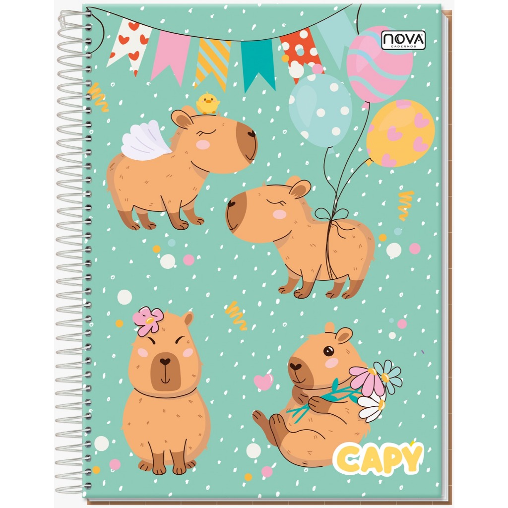 Kit Caderno Capa Dura Universitário Capivara 1 e 10 Matérias Caderno Espiral Capy 80 e 160 Folhas