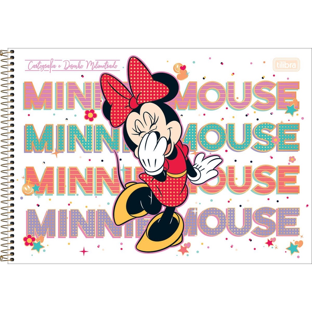 Kit Caderno de Desenho Minnie Disney 80 Fls Capa Dura com Adesivo Tilibra + Lápis de Cor Faber 12 Cores Escolar Infantil