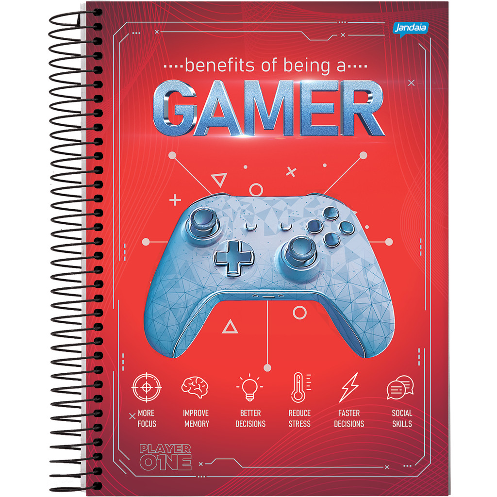 Certificação do INMETRO: Não aplicável Produto certificado pelo FSC: C004089 Especificações Técnicas: Marca: Jandaia Referência: 69064-25 Características do Produto: Caderno Universitário Capa Dura 1 Matéria 80 Folhas Player 1 Dimensões do produto: 200x275mm Composição interna: miolo de 56g Embalagem: Pacote com 4 unidades OBS: Mercadoria Enviada de Forma Sortida Descrição: No vasto mundo dos jogos e da imaginação, a linha de cadernos Player 1 se destaca como uma ode à jogabilidade, ao humor e à nostalgia. Inspirada pela paixão por videogames e pela vontade de mergulhar em aventuras épicas, essa coleção é um tributo à cultura gamer. Com elementos de jogabilidade, pitadas de humor e atalhos para superar desafios, os cadernos da linha Player 1 se transformam em verdadeiros ¿controles¿ para vencer as fases da vida.