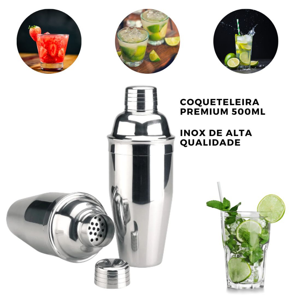 KIT Caipirinha 4 peças Premium Faça deliciosas bebidas, coquetéis, batidas, caipirinhas e uma infinidade de outras receitas com este prático e funcional kit. Este kit possui coqueteleira e Socador. Possui boca com filtro para reter pedaços maiores de frutas! Acessório prático e elegante para elaborar desde bebidas simples até as mais sofisticado coquetéis, Receba seus convidados com estilo, preparando deliciosos drinks com esta moderna e prática coqueteleira. Com gargalo perfurado que permite a coagem de drinks e separação do gelo. Você deve adicionar os ingredientes dentro da coqueteleira, fechá-la e agitar para preparar o coquetel. __________________________________________________ Especificações da Coqueteleira: • Material: Aço inox • Acabamento Em Alto Brilho. • Composta por tampa, gargalo e corpo • Capacidade: 500ML • Tamanho: 20cm Altura x 9cm Diâmetro Maior x 6cm Diâmetro Inferior • Material de ótima Qualidade; • Excelente acabamento; • Design Clássico; Especificações do Socador: Material: Aço Inox Comprimento: 20,5cm Largura: 2 cm Diâmetro da Base: 3,5cm Peso: 130g Modo de Lavar: • Utilizar somente esponja macia, a fim de não riscar ou prejudicar o brilho do produto. Enxaguar bem as peças para evitar oxidação e sempre que possível, utilizar água quente, pois renova o brilho do produto. _________________________________________________ Conteúdo: 1 - Coqueteleira em Inox 500ML 1 - Socador em Inox 1 - Dosador Duplo (7cm x 4cm) 1 - Colher 20CM Seja você profissional Bartender ou amador, amante de Drinks, seja bebendo ou fazendo drinks incríveis, chegou o momento de ter acesso às ferramentas essenciais para compor deliciosas bebidas, coquetéis, batidas, caipirinhas e uma infinidade de outras receitas de drinks, conheça este prático e funcional kit Coqueteleira 4 peças em Aço Inox! Garantia do vendedor: 30 dias