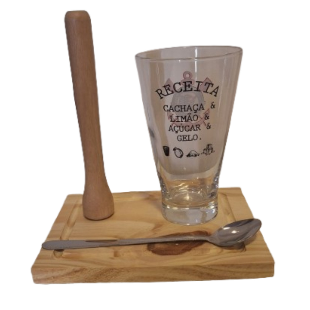 Agora os torcedores corinthianos podem aproveitar uma super caipirinha com muito estilo e irreverencia enquanto assistem o jogo do timão. Uma caipirinha que se preze precisa de ingredientes de boa qualidade e um kit de respeito. O KIT CAIPIRINHA é composto por um copo, socador, colher e uma tábua e vai te auxiliar no preparo de uma das bebidas mais famosas do país. Só vai ficar faltando o limão, a cachaça, o açúcar e o gelo pra ficar no ponto e você aproveitar. Características: Altura: 23,5 cm Largura: 10 cm Comprimento: 38 cm Capacidade: 350 ml Contém: 1 copo, 1 socador, 1 colher e 1 tábua Cuidados: Lavar com água e sabão neutro Não utilizar produtos químicos e abrasivos Choques e quedas podem danificar o produto