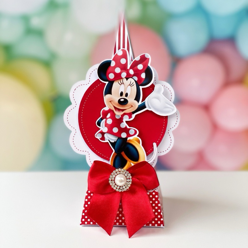 Kit Caixa Cone / Pirâmide Minnie Vermelha Luxo (10, 20 ou 30 un) Personalizada Nome - Papel Fotográfico Brilho