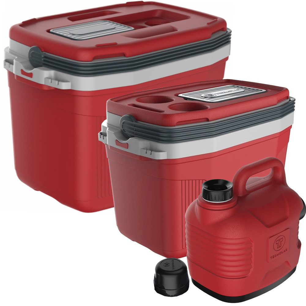 Kit Caixa Cooler Térmico 20 e 32 Litros com Garrafão 5 Litros Azul / Vermelho / Cinza Termolar