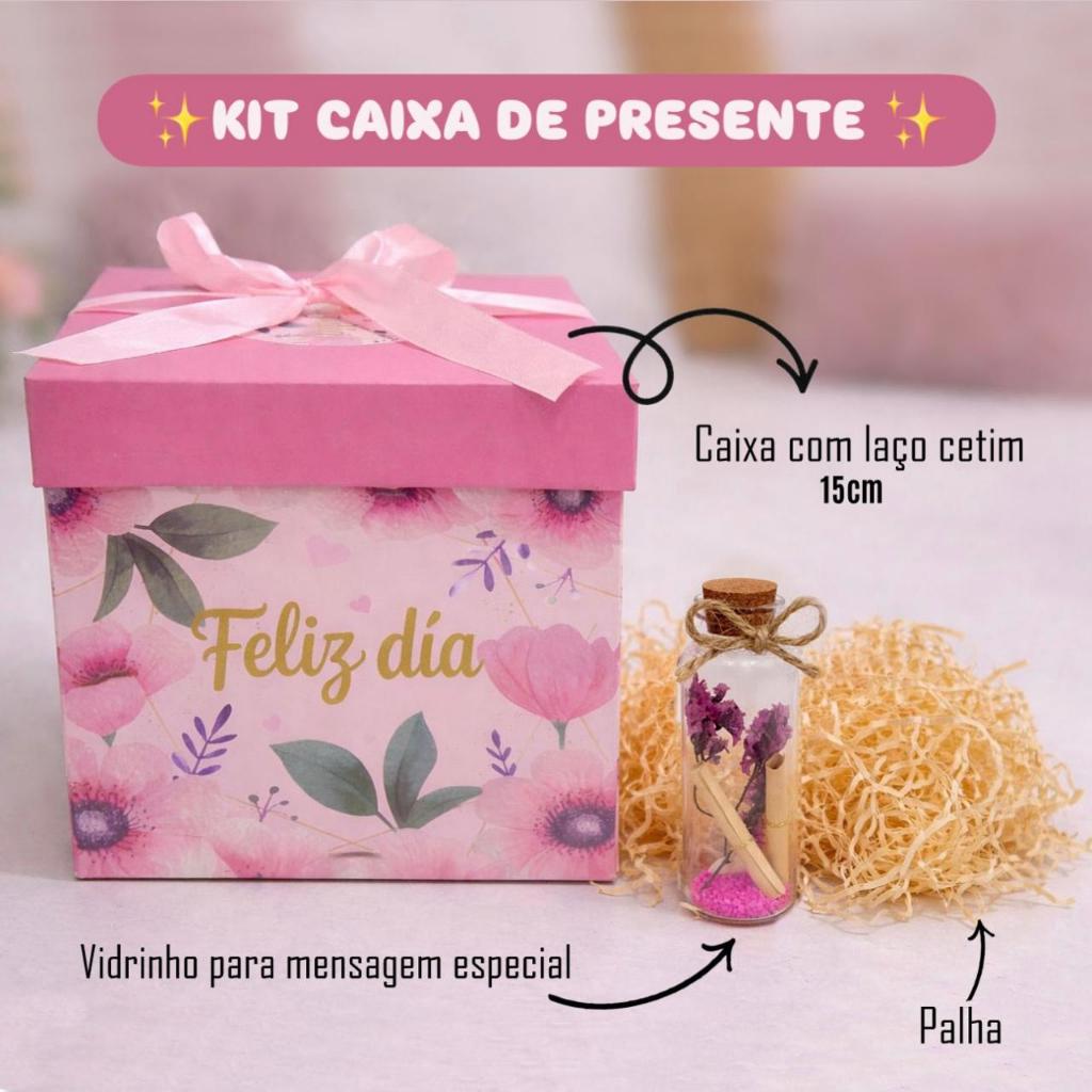 Kit Caixa de Presente com Palha e Vidrinho para Mensagem | Dia das Mães