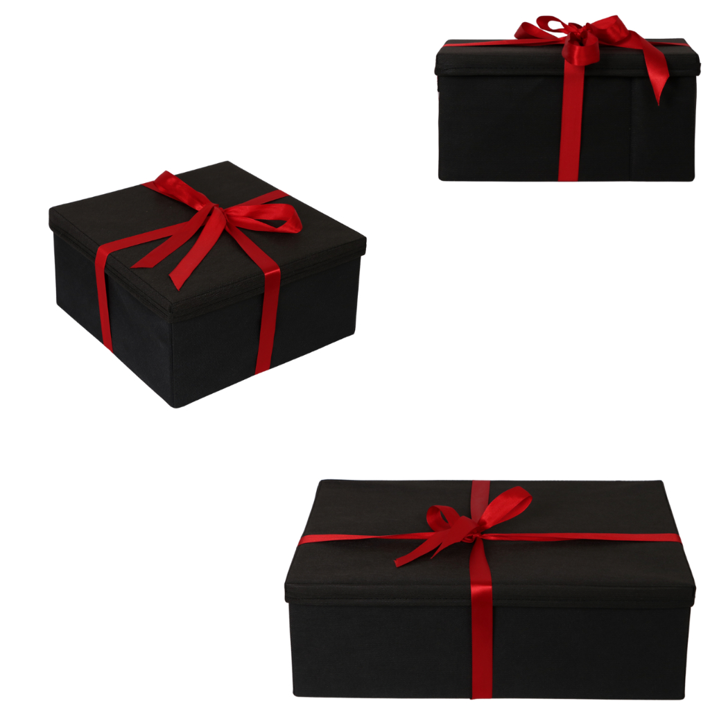 KIT Caixa Embalagem Presente Com Tampa Preta Laço Fitilho Cetin