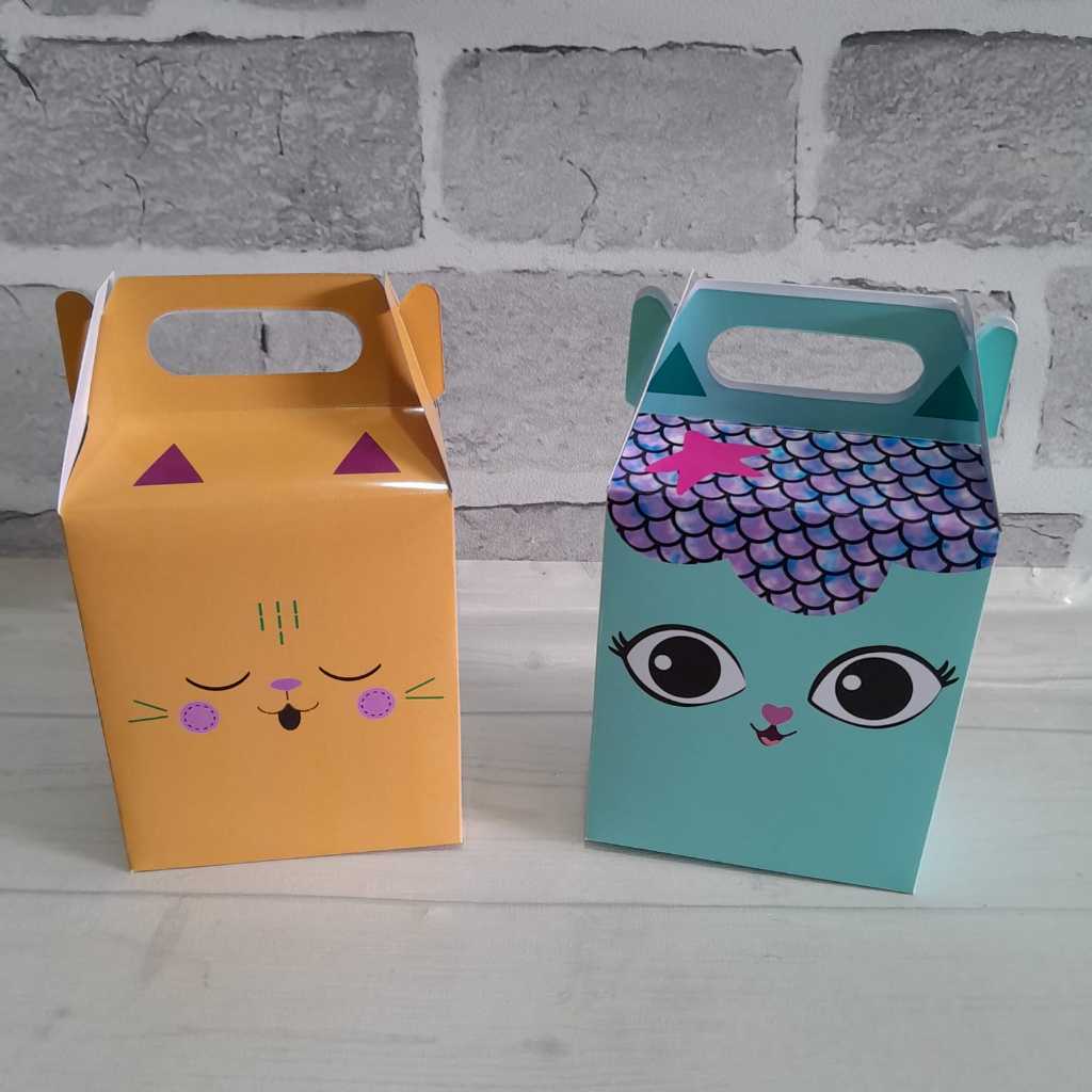 Caixas personalizadas gatinhos casa magica da gabbi LEIA COM ATENÇÃO Ideal para doces pequenos, bombons, chocolates, pão de mel, suspiro, aromatizador, ou seja lembrancinhas e brindes pequenos e que não sejam gelados para não danificar a caixa. ÁREA ÚTIL DA CAIXINHA É DE 9,5CM DE ALTURA POR 8CM DE LARGURA OU SEJA PARA DOCES E BRINDES PEQUENOS... Impressa em papel fotográfico 180g e cortada em maquina de corte garantindo ótima qualidade do produto. Vão cortadas, vincadas e desmontadas para facilitar no frete e transporte. Mas são de fácil montagem. NÃO NECESSITA DE COLA ELA É 100% DE ENCAIXE COLOCAMOS NOME MAIS TEM QUE SER ENVIADO NO ATO DA COMPRA SE NÃO FOR ENVIADO NO ATO DA COMPRA ENVIAREMOS SEM NOME. POSTAGEM RÁPIDA. **** ANÚCIO REFERENTE SOMENTE DA CAIXINHA*** NÃO ACOMPANHA DOCES E BRINDES ANÚNCIO SOMENTE DA CAIXINHA. QUALQUER DÚVIDA CHAMAR NO CHAT ESTAMOS A SUA DISPOSIÇÃO!!!! - ATENÇÃO!!! Os personalizados podem mudar de 10 a 30% dos tons real para a tela do computador/celular. Pois depende muito do modelo do seu aparelho celular e brilho de tela que esteja utilizando. ( por esse motivo algumas fotos das avalições tem os tons um pouco diferente dos tons do anuncio, pode mudar de câmera para câmera dependendo do modelo celular e qualidade da foto ).