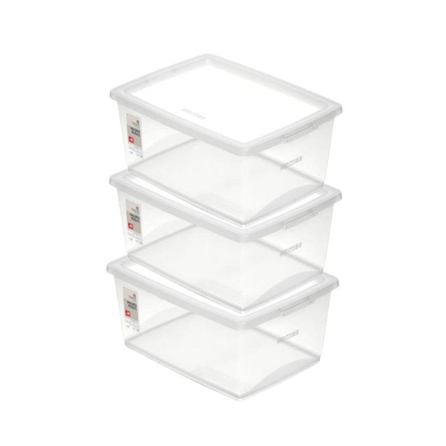 Kit Caixa Organizadora Plástica Cristal 15L com 3 Unidades Ordene