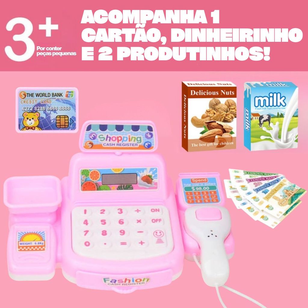 Kit Caixa Registradora Rosa C/ Acessórios E Scanner Interativo Luz e Som