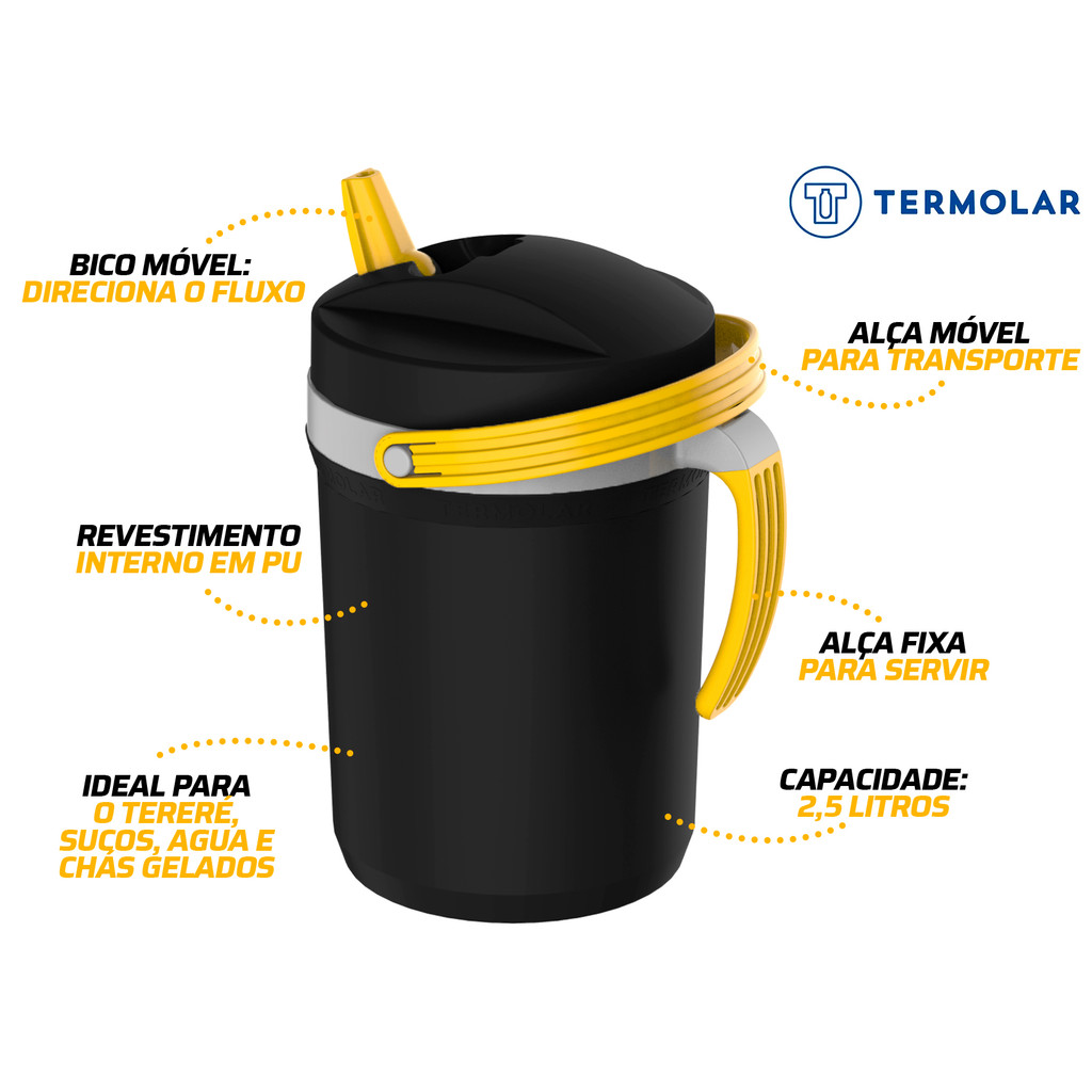Distribuído por Ismafer Ferramentas Caixa Térmica SUV 20L Termolar Segura, útil e versátil, a Caixa SUV possui design exclusivo Termolar, com diferenciais utilitários pensados para a praticidade em diferentes usos. Seja na praia, na piscina, no campo, na viagem ou em casa, a SUV é a escolha certa para te acompanhar Sua alça é reforçada e mais resistente proporcionando segurança para o transporte individual, e maior ergonomia através de angulações nos cantos, para o transporte em dupla. A tampa contém pegas superiores e inferiores que possibilitam a abertura com apenas uma mão. Já na sua base, possuem pegas que facilitam a retirada do líquido, ou gelo. Outro diferencial está nas pequenas alças laterais, que possibilitam prender sacolas ou cordas elásticas. Um produto com a qualidade e garantia Termolar. Ficha técnica: - Tampa com estojo porta trecos. - 2 porta copos. - Alojamento na tampa para acomodar o smartphone. - Sistema "Air Flow" na base que melhora a performance de conservação térmica. - Alça mais resistente - Pegas laterais salientes - Alças laterais prender sacolas ou cordas elásticas - Comporta: 26 latas de 350ml ou 20 latas de 473ml ou 4 garrafas PET de 1,5L ou 2 garrafas PET 2L. - Diâmetro do porta copos: 74mm. LIMPEZA EXTERNA: Limpe com pano úmido e sabão neutro. Para a melhor limpeza, siga as orientações da bula que acompanha o produto. Não é necessário deixar o produto de molho. Seguindo essas orientações, os produtos Termolar conservarão líquidos por muito mais tempo. EAN:7891023583587 + Jarra Térmica Fliptop 2,5L A jarra térmica Fliptop 2,5L é a companheira perfeita para momentos ao ar livre, especialmente para quem aprecia tereré, sucos e chás gelados. Com um design pensado para oferecer praticidade e comodidade, a jarra térmica para tereré possui duas alças: uma móvel, que facilita o transporte, e uma fixa, que torna o ato de servir mais confortável. Além disso, conta com um bico móvel que direciona o fluxo ao servir, e um bocal grande que facilita tanto a reposição das suas bebidas favoritas quanto a higienização interna. Projetada para ser versátil e fácil de transportar, a jarra térmica Fliptop é ideal para momentos em família, seja para preparar o tereré dos adultos ou o suco fresquinho dos pequenos. A combinação de funcionalidade e qualidade é evidente em cada detalhe, garantindo que você possa desfrutar das suas bebidas frias por muito mais tempo, graças ao eficiente isolamento térmico em PU, que proporciona alta resistência e durabilidade. Com a confiança e qualidade dos produtos, a jarra térmica Fliptop foi desenvolvida para fazer os bons momentos durarem ainda mais. Seja para um dia no parque, uma tarde de descanso ou uma reunião em família, esta jarra é a escolha ideal, assegurando que suas bebidas estejam sempre na temperatura perfeita e prontas para servir. Características Técnicas: - Capacidade: 2,5 Litros - Fácil de transportar - Versátil - Duas alças: Móvel - para facilitar o transporte - Bocal grande: facilita a higienização interna e a reposição das bebidas - Bico móvel: direciona o fluxo - Revestimento interno em PU: Garante alta resistência e durabilidade - Ideal para o tereré, sucos, agua e chás gelados SKU: KIT24098_24370 Distribuído por Ismafer Ferramentas.