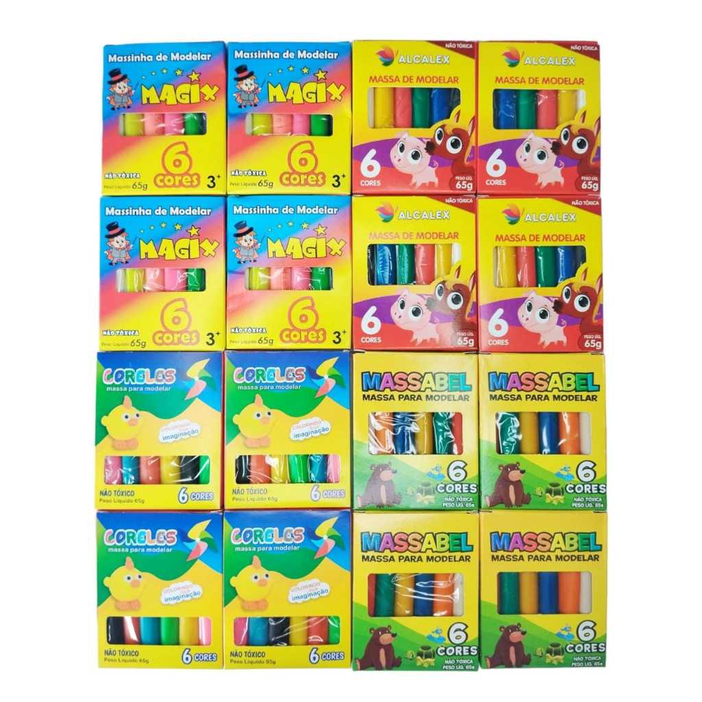 Kit Caixas Massinha de Modelar 6 Cores Diferentes Colorida Lembrancinha Festa Aniversário Criança