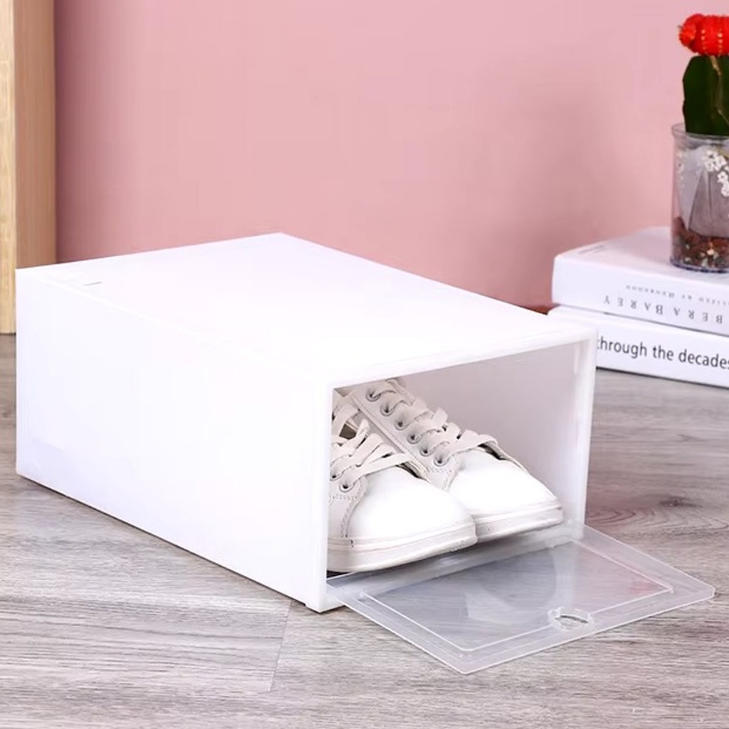 Se você não tem lugar para guardar os sapatos em casa ou tem dificuldade em encontrar o calçado que procura, a caixa organizadora vai te ajudar a resolver estes problemas! - O produto tem uma tampa transparente para fácil visibilidade. - Design de combinação livre, fácil de mover. - Sapatos de tamanho grande também podem ser guardados. - Encaixes plugáveis para empilhar umas nas outras. - Plástico super-resistente e flexível. Pode ser utilizado para: - Guardar Sapatos /Ténis/Chinelos/Sandálias - Objetos - Roupas - Itens de Escritório Cores: Branco, Preto, Rosa, Azul e Verde Especificações: Composição: Plástico Tamanho de cada caixa Altura: 13cm Comprimento: 33cm Largura: 24cm