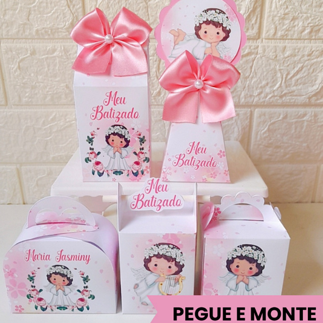 Kit Caixas Personalizadas Batizado menina Pegue e Monte Lembrancinha Festa Infantil Batizado meninaCaixinha Mimo