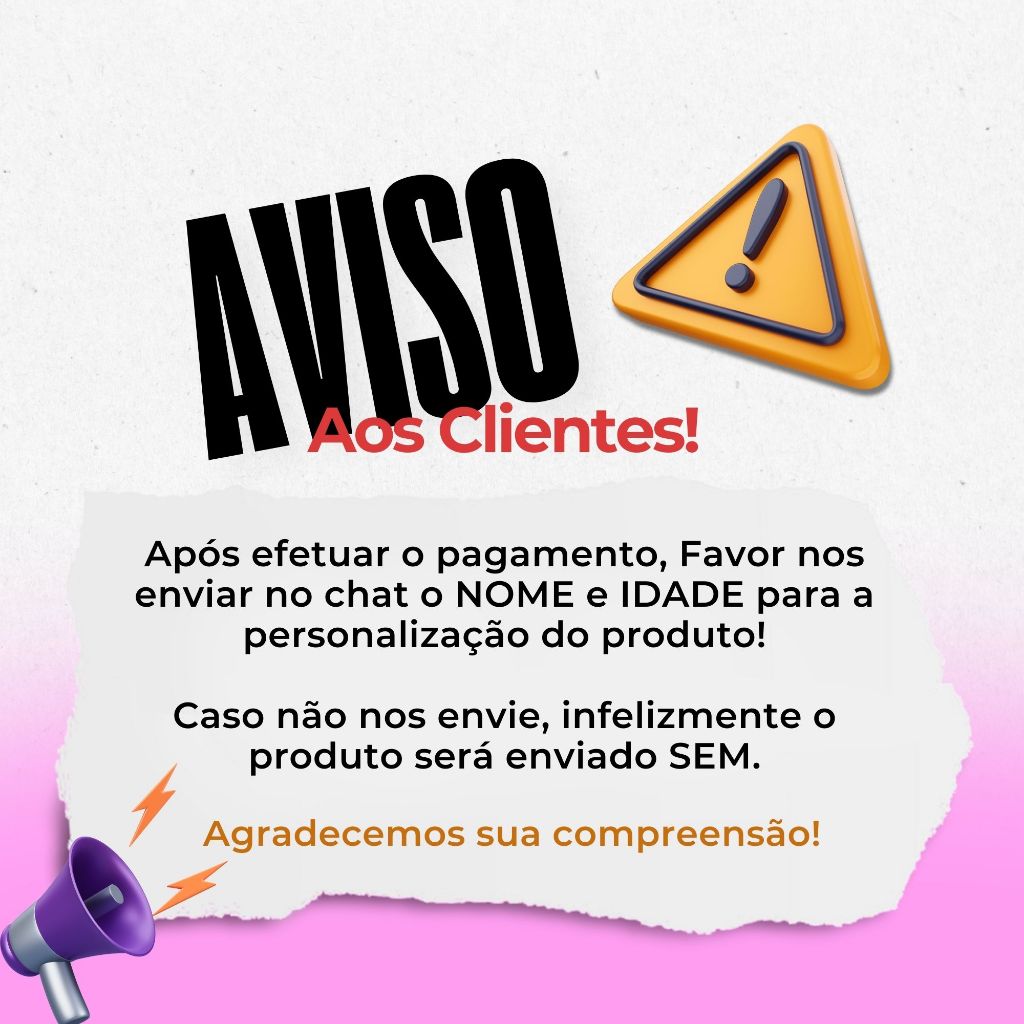 DESCRIÇÃO LEIA COM ATENÇÃO! ATENÇÃO ao Prazo de 10 dias ÚTEIS para a confecção. (não fazemos em prazo menor) Após efetuar o pagamento envie o NOME E IDADE! Caso não envie, enviaremos SEM o nome e idade. O kit é como nas fotos. não enviamos arte para aprovação. ACOMPANHA as fitinhas( cores de acordo com disponibilidade de estoque) PEGUE E MONTE- Para você montar em casa. As caixas são enviadas cortadas e com vinco. Acompanha vídeo auxiliando a montagem. Necessita de cola quente ou de silicone para a colagem. O kit contém 5 modelos de caixas. Não alteramos os modelos das caixas. Clique no carrinho de compra e escolha a quantidade que deseja. Produto feito em papel offset 180g (FOSCO), impressão de alta qualidade. TAMANHOS: A/L/C PIRAMIDE: 16,5 X 6,5 cm MILK: 14,5 x 6cm (Área útil: 7,5x6cm) CANUDO: 9 x 6cm (Área útil: 6x6cm) ALTA COM ALÇA: 14 x 5,5cm (Área útil: 8,5x5,5cm) MEIA BALA: 13 x 6 (Área útil: 6x6cm) ATENÇÃO: As cores dos personalizados podem variar de tonalidade de acordo com cada monitor, tela e claridade do local onde a foto foi tirada. Calcule se o prazo de produção + o prazo de entrega atende a data do seu evento. NÃO ACHOU SEU TEMA? ENTRE EM CONTATO PELO CHAT!