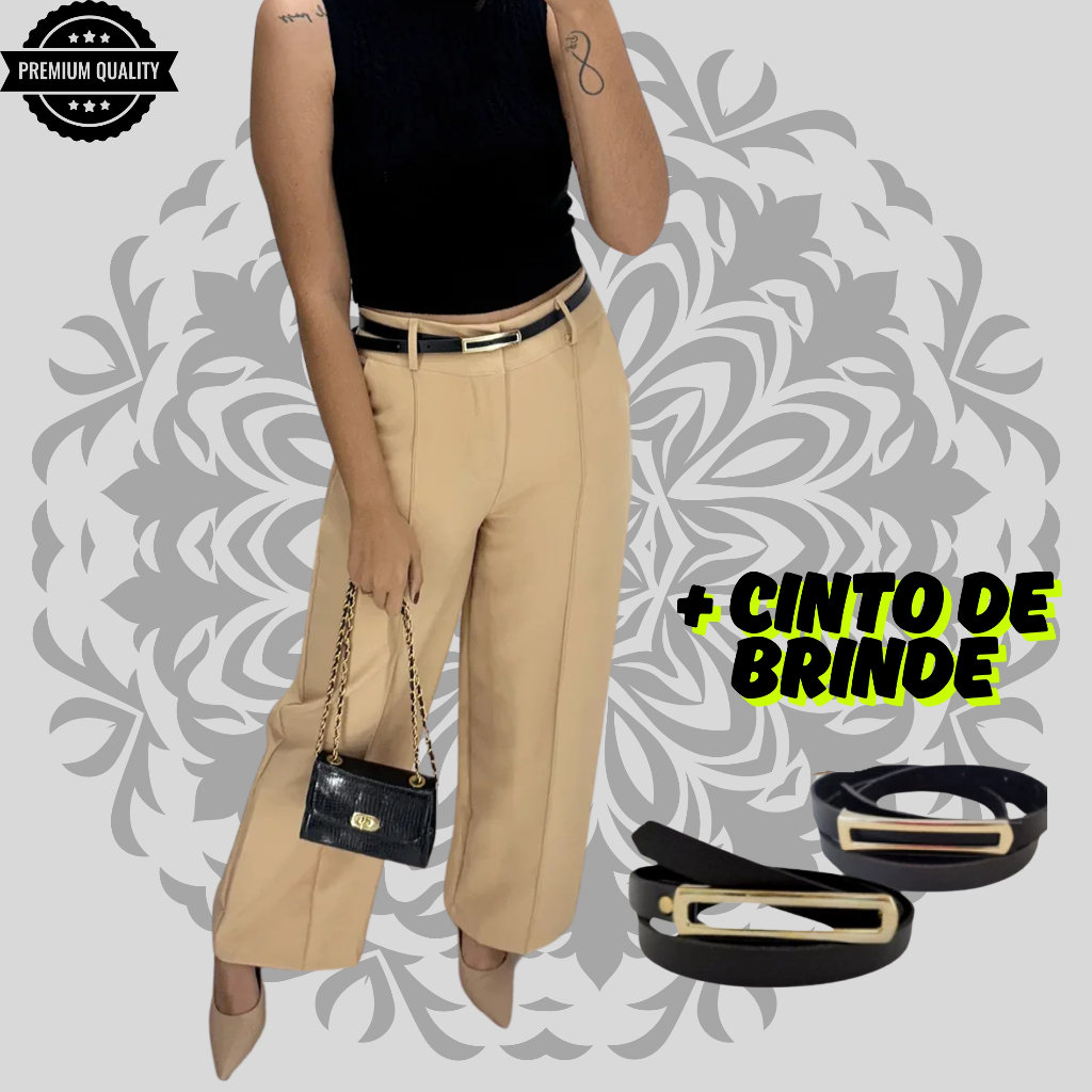 KIT CALÇA E CINTO ALFAIATARIA Pantalona ZR Elegante SOCIAL COR CINZA COM ZIPER E BOLSOS