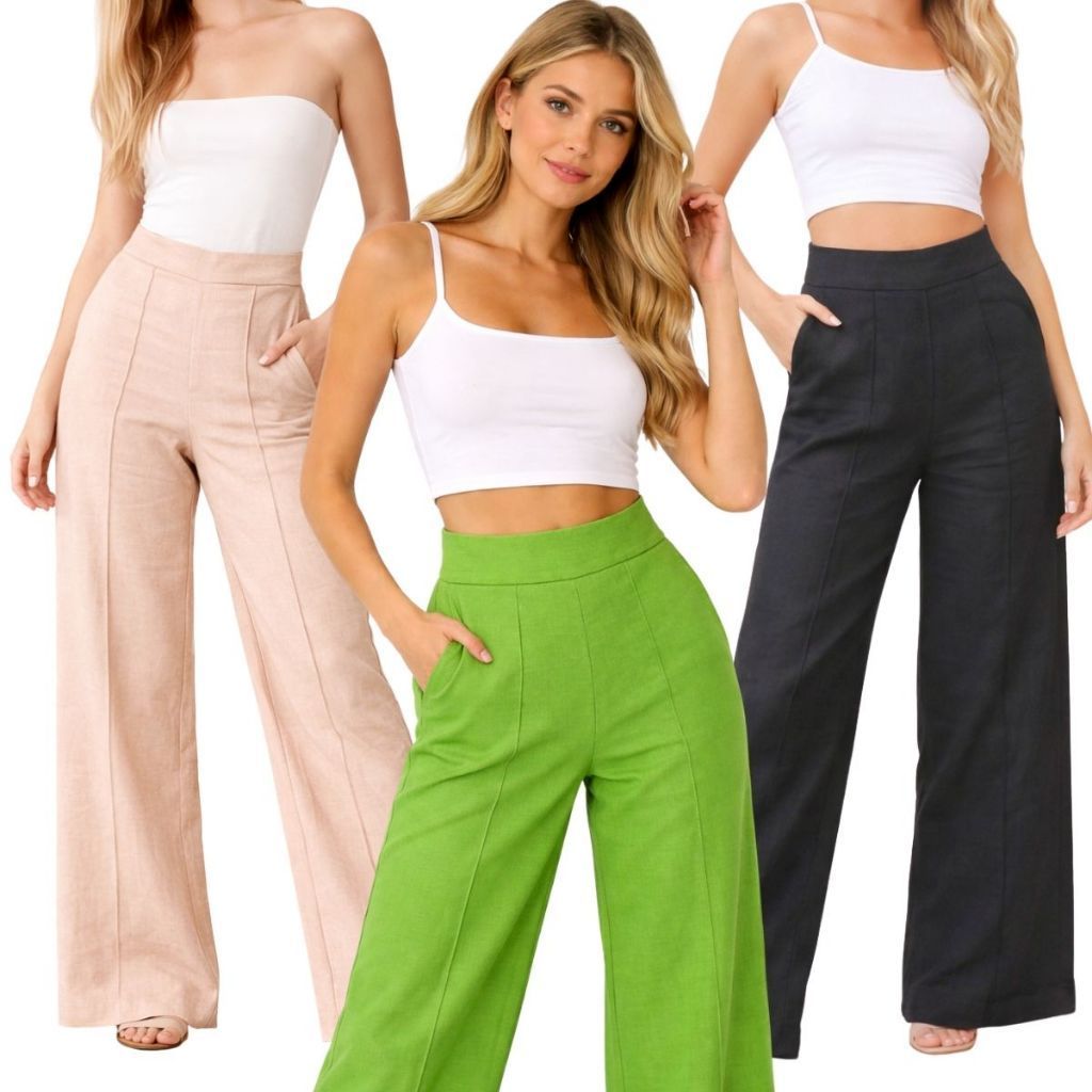 KIT Calça LINHO Duna Social Pantalona Cintura Alta Elegante PROMOCAO