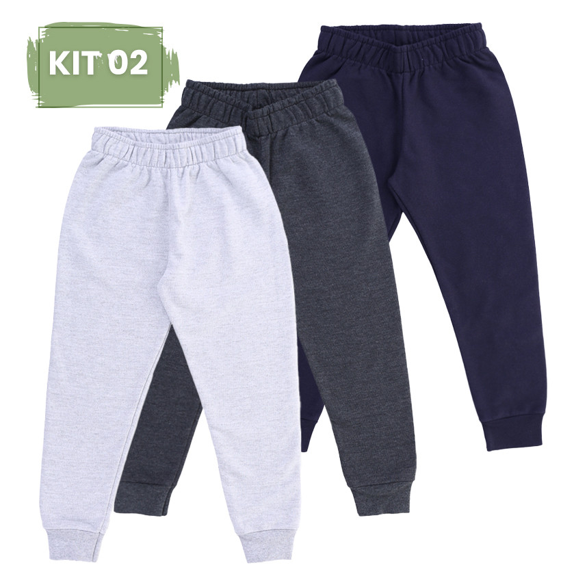 Kit Calça Moletom Infantil Flanelado com Punho Kyly – Tamanhos 1 ao 3