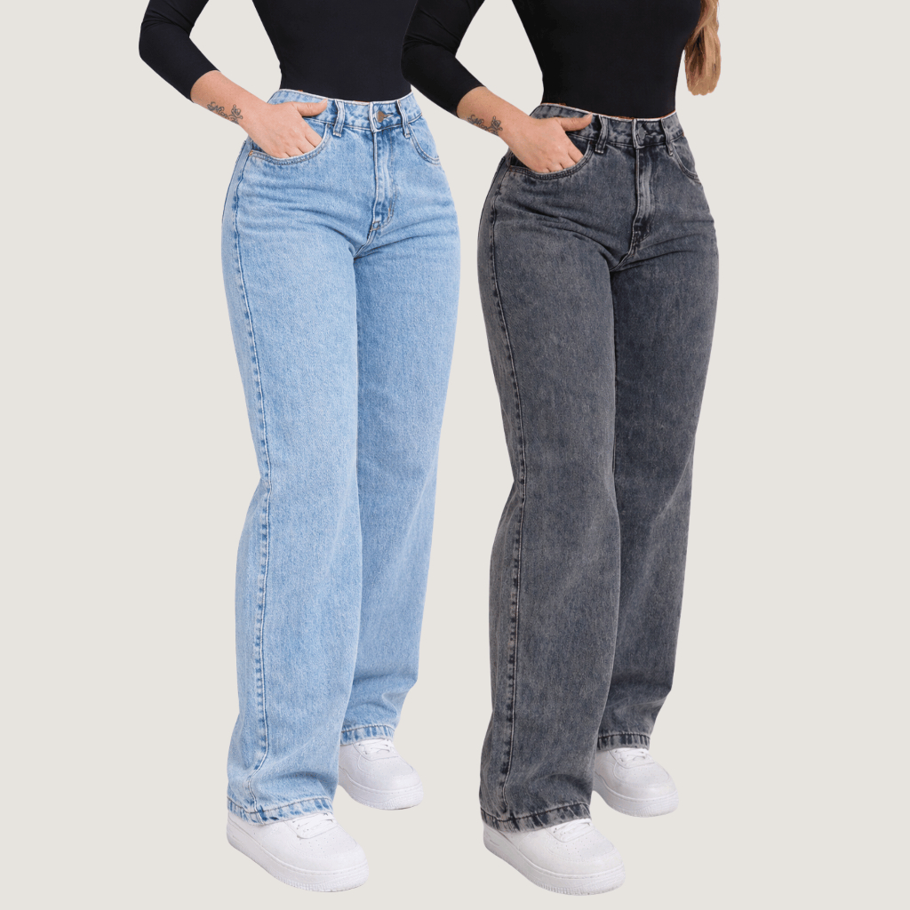 Kit Calça Wide leg Jeans Grafite Feminina Pantalona