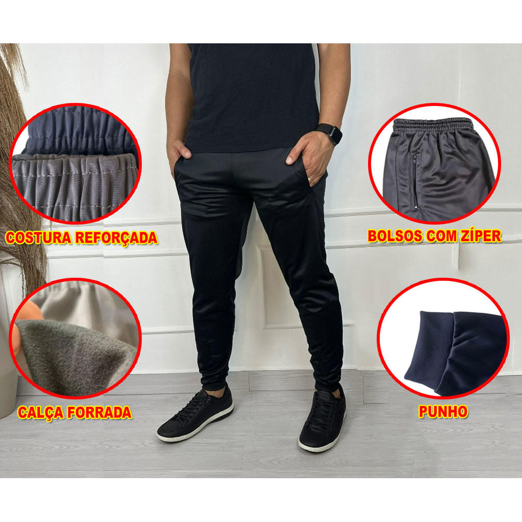 Kit Calças Jogger Masculina Esportiva Flaneladas com zíper nos Bolsos