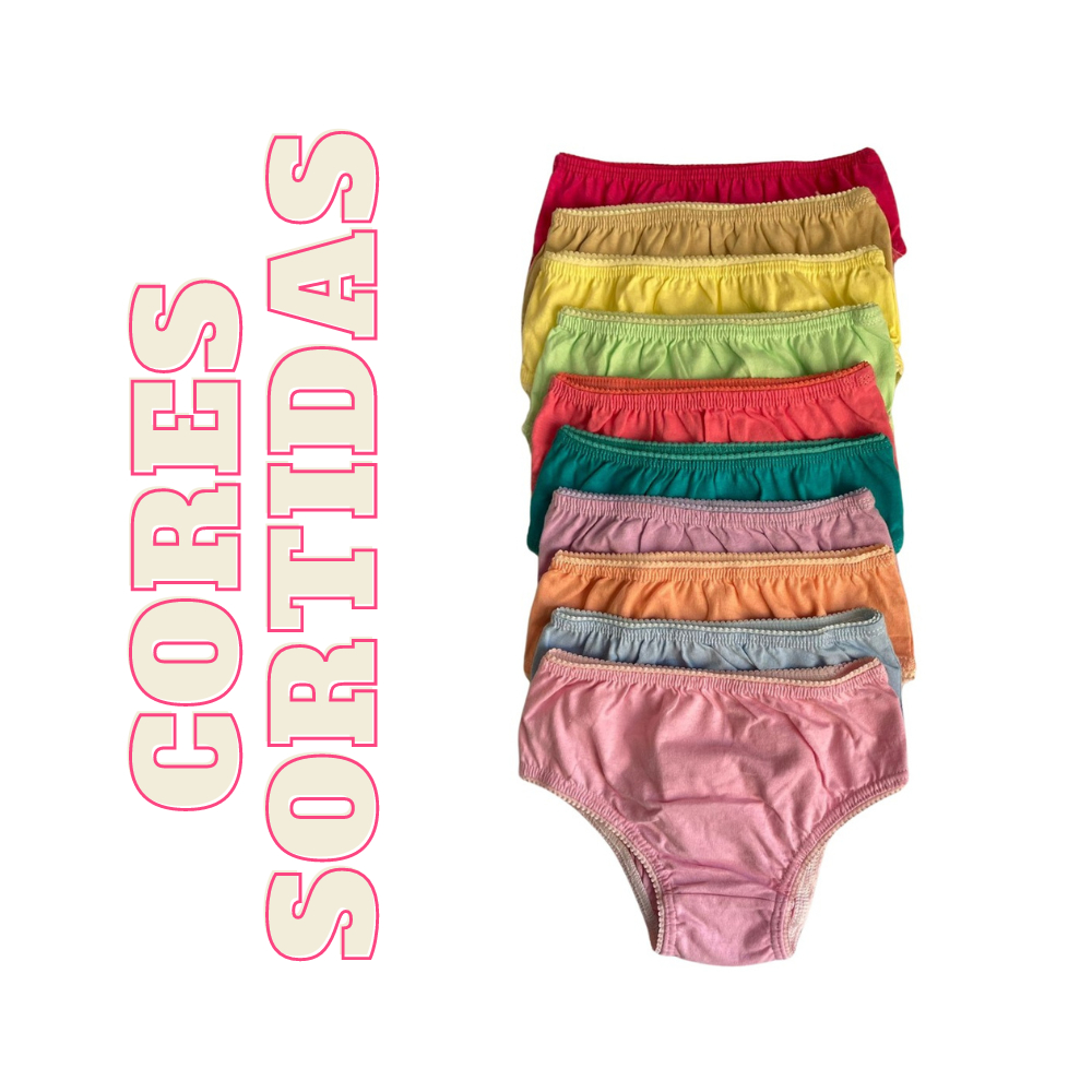 Kit Calcinha Algodão Feminina Infantil Menina Antialérgica Calcinhas Infantis de Algodão