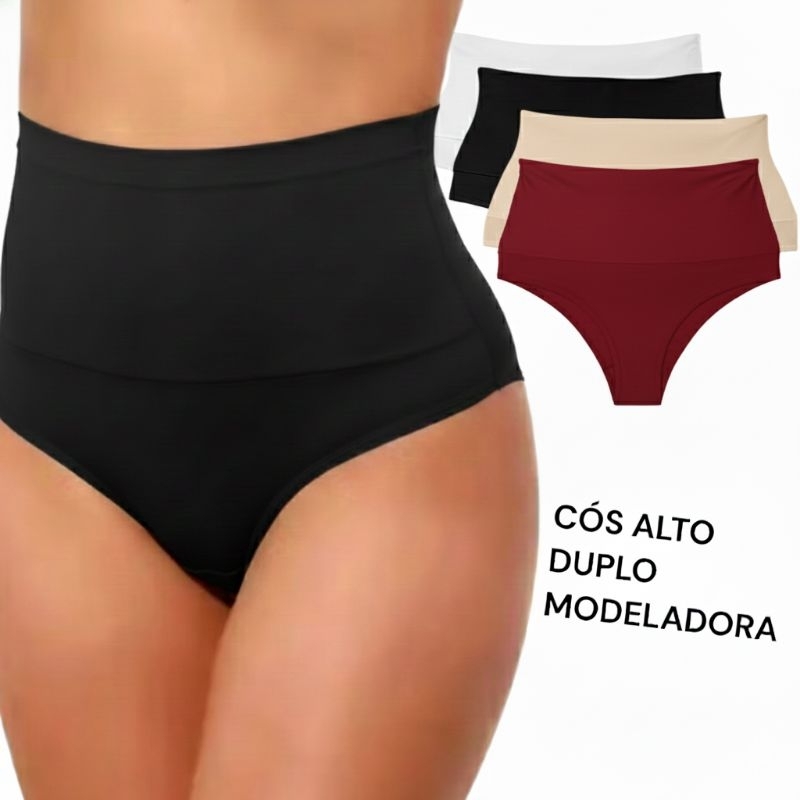 Kit Calcinha Cós Fio Duplo Cinta Modeladora Calçola Cintura Alta Cós Alto Duplo Lingerie Feminina- Confortável