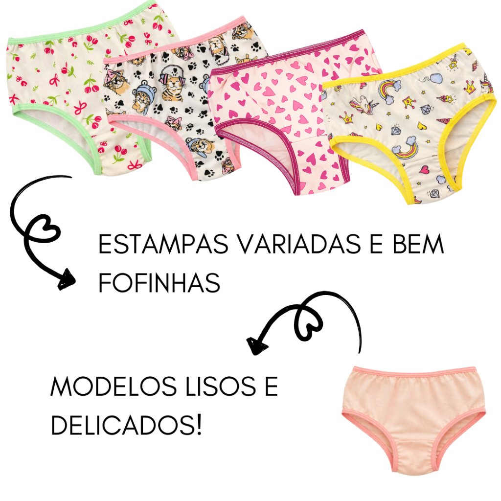 Kit Calcinha Infantil Algodão Estampada de 0 a 10 Anos Conforto Menina Criança