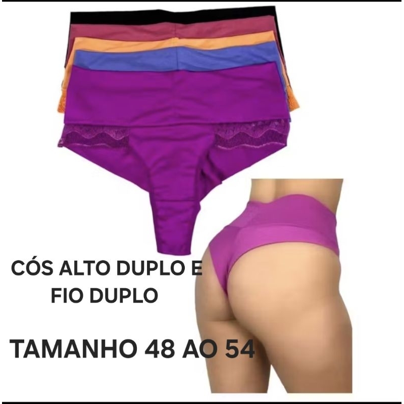 Kit Calcinha Plus Size Fio Duplo Com Renda Modela R3 Reduz Culote Cós Fio Duplo Cintura Alta R 3