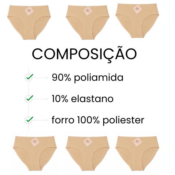 Kit Calcinhas Cós Alto 10mm Calçola Lisa Conforto Premium Feminino Sinta-se linda e confortável todos os dias com o Kit de Calcinhas Cós Alto 10mm Conforto Premium! Com modelagem anatômica e tecido supermacio, esse kit foi desenvolvido para valorizar suas curvas com leveza e segurança, oferecendo o equilíbrio perfeito entre conforto, sustentação e estilo. Destaques do produto: Modelagem plus size com cós alto de 10mm que não aperta Tecido leve, respirável e de toque suave Acabamento reforçado e costuras delicadas Ideal para uso diário, garantindo liberdade de movimento Tamanhos disponíveis: P/M: veste do 40 ao 42 G/GG: veste do 44 ao 46 Composição: 90% Poliamida 10% Elastano Forro: 100% Poliéster Perfeitas para: Trabalho, academia, viagens ou momentos de descanso — você sempre confortável e confiante! Garanta já o seu Kit de Calcinhas Cós Alto 10mm e sinta a diferença do verdadeiro conforto premium!