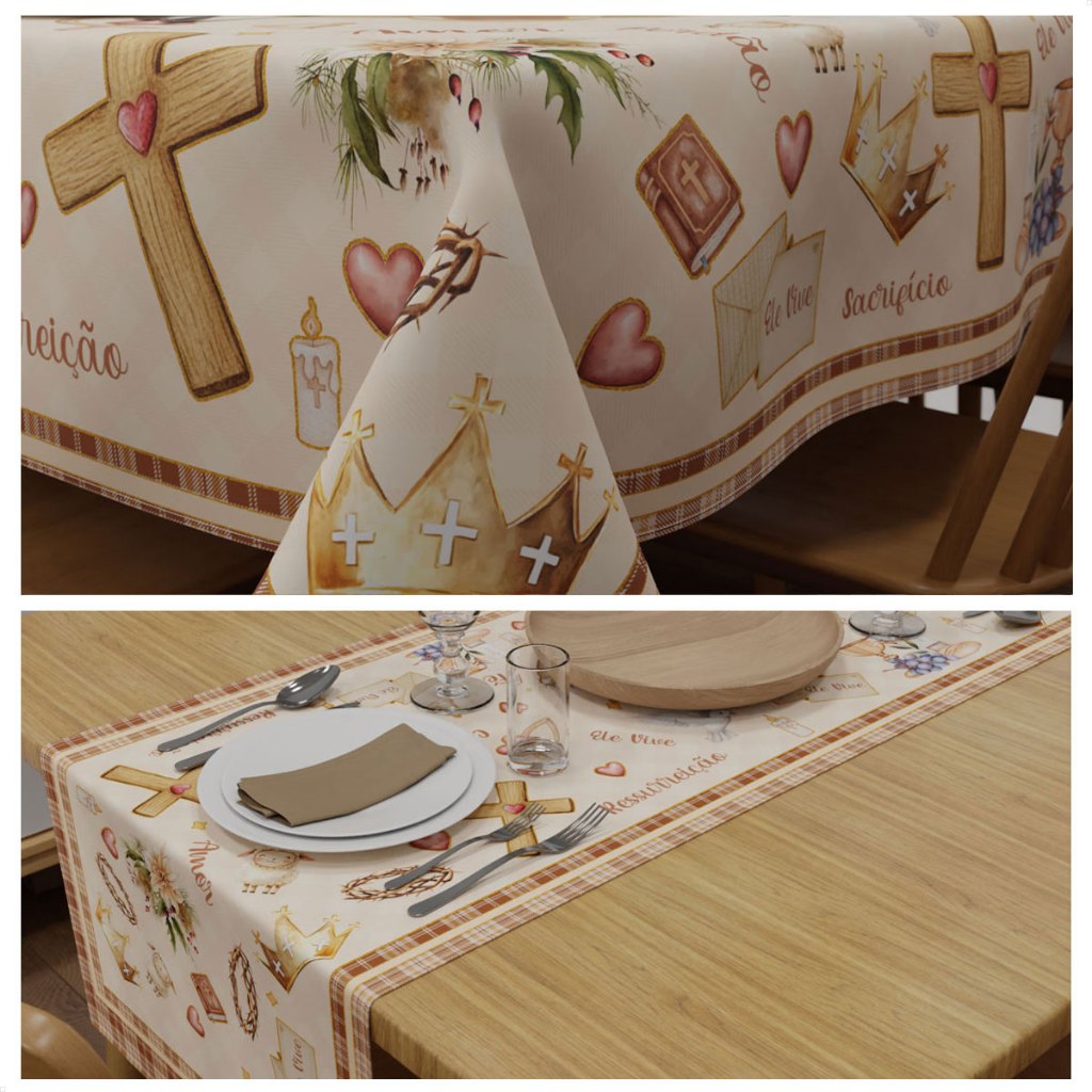 Kit Caminho de Mesa com Toalha Retangular Estampada Decoração de Páscoa - Mesa Posta