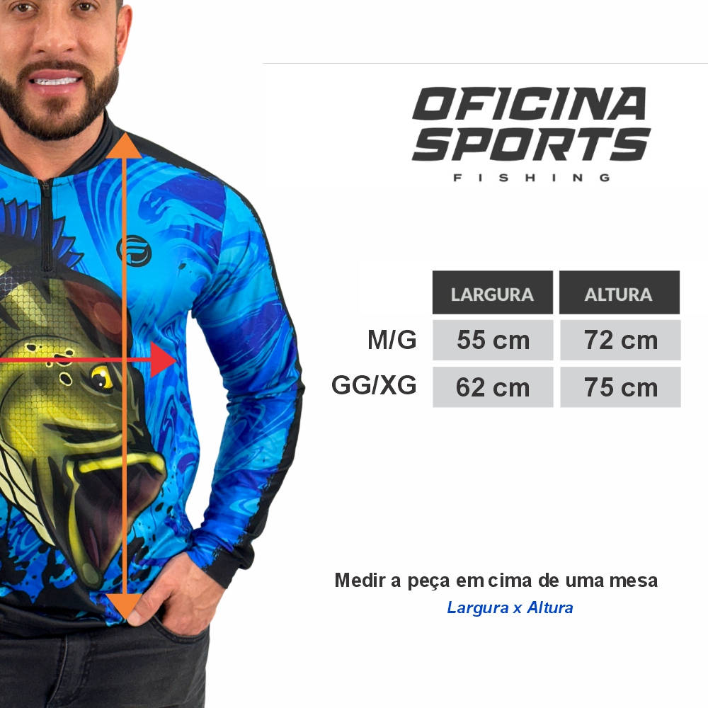 LANÇAMENTO COLEÇÃO KIT CAMISA DE PESCA + BANDANA COLORIDA DIRETO DO FABRICANTE Caso a estampa que escolher não estiver em estoque, mandaremos outra com a mesma excelência na escolha. MODELO DA FOTO: 1.74 CM 80 QUILOS TAMANHO: M/G A Oficina Fishing tem anos de mercado e somos fabricante com local Físico, então não se preocupe que a somos novos apenas aqui na shopee. OBS:A bandana será enviada modelo único, que combina com qualquer estampa escolhida ==================================================================================================== NÃO PERSONALIZAMOS, OS PRODUTOS SÃO EXATAMENTE CONFORME AS FOTOS. TECIDO TECIDO DRY FIT ULTRA PREMIUM UV50+ Produto em estoque pronta entrega - Envio para o correios em 24 horas ===== BENEFÍCIOS: ===== - PROTEÇÃO SOLAR UV50+ - ZÍPER EMBORRACHADO COM TRAVA INTELIGENTE - ESTAMPA COM RESOLUÇÃO 3D - SECAGEM ULTRA RAPIDA - TECIDO LEVE E RESPIRÁVEL - TECIDO SE ADAPTA AO FRIO E CALOR - TECIDO QUE NÃO AMASSA - TAMANHO CONFORTÁVEL AO CORPO - GOLA ANATÔMICA ==================================================================================================== MODELO UNISSEX - TECIDO QUE NÃO DESBOTA - TECIDO DRYFIT - ALTA QUALIDADE NOS ACABAMENTOS - ZÍPER NA FRENTE - 100% POLIÉSTER ==================================================================================================== Medidas das camisas: [ Largura x Altura ] M/G: 56 x 72 cm GG/XG: 62 x 76 cm MEDIDAS PODEM SOFRER DIFERENÇA DE 3% PARA MAIS OU PARA MENOS ==================================================================================================== [ Como medir ? ] 1- Colocar a camisa que você já utiliza em cima de algum local reto, e deixar bem esticadinha. 2 - pegar uma régua ou uma fita métrica e medir a largura e altura da peça 3 - pronto agora já sabe qual tamanho fica melhor para você ==================================================================================================== Para efeito de busca: Pesca proteção camisa camiseta de De Uv50 blusa solar UV50 com + térmica UV50+ kit dryfit com king tucunaré tecido dourado, traíra pescador, tamba, tambaqui ,