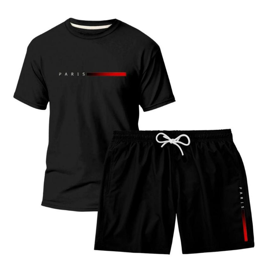 Kit Camisa Masculina + Short Tactel Paris Lançamento Treino Academia Esporte Verão
