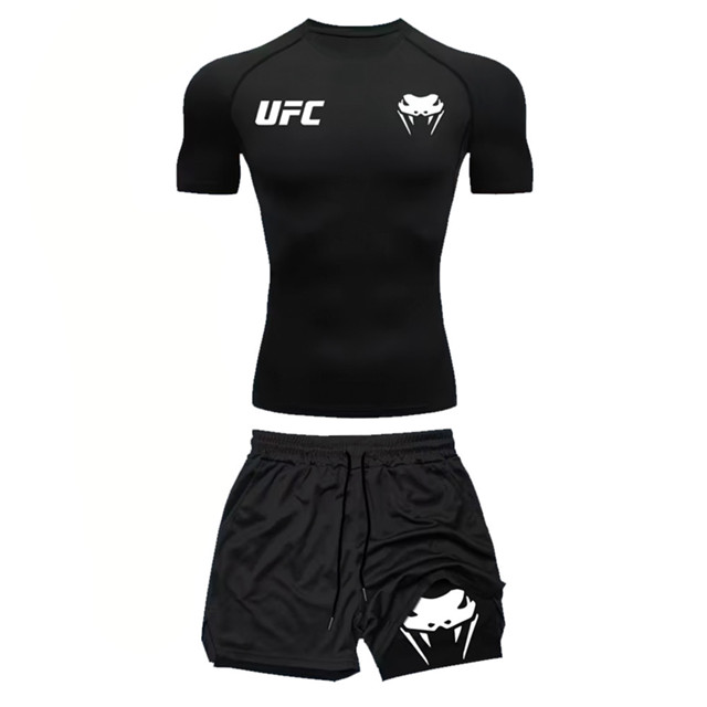 Kit Camiseta Compressão e Short Compressão Ufc Snake Estilosa Para Treinar Academia Gym Arte Fitness
