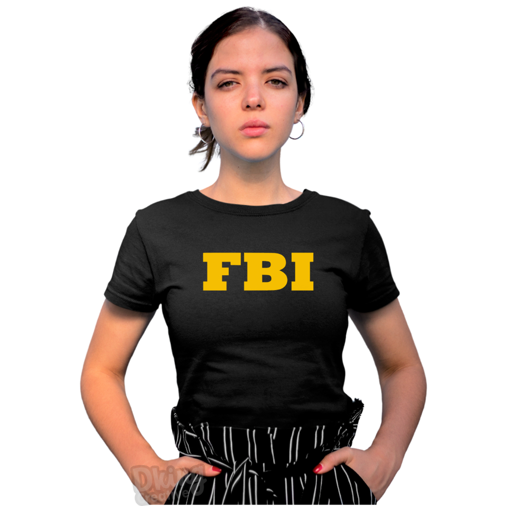 Kit Camiseta Feminina Fbi Amarelo Police Eua Fantasia Baby Look + Boné