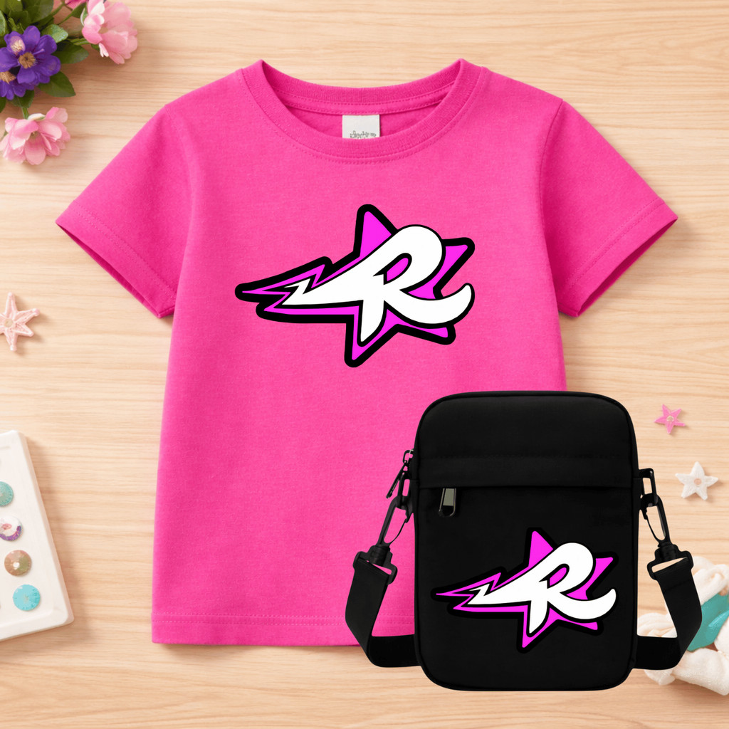 Kit Camiseta Infantil Emilly Vick Elementos + Bolsa Shoulder Bag Transversal Rosa Pink Os Rosas