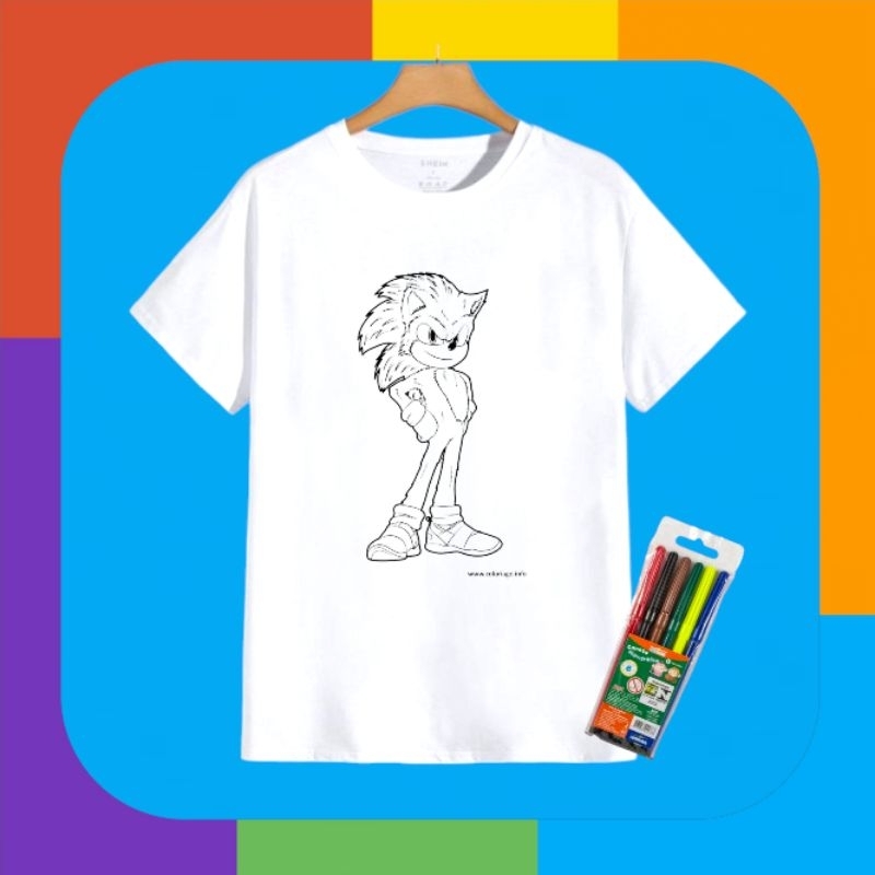 Kit Camiseta Mágica de colorir + Estojo de Canetinha Sonic