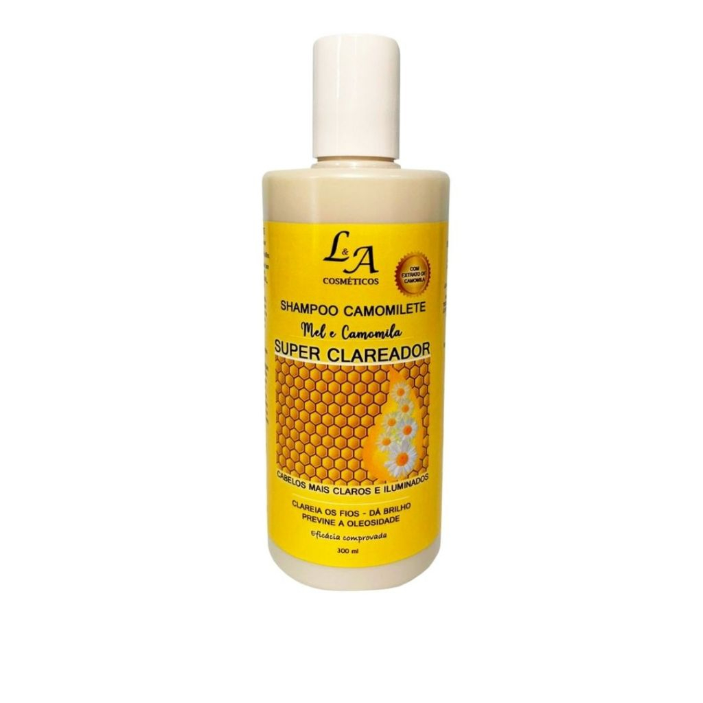 Fácil Aplicação: Ideal para uso em casa, proporcionando resultados profissionais. Modo de Usar: Shampoo Clareador: Aplique nos cabelos molhados, massageie suavemente e enxágue. Repita se necessário. Loção Clareadora: Com os cabelos limpos e úmidos, aplique a loção no comprimento e nas pontas, evitando a raiz. Deixe agir por 20 a 30 minutos e enxágue. Máscara Clareadora: Após usar a loção, aplique a máscara nos cabelos úmidos, distribuindo uniformemente. Deixe agir por 15 a 20 minutos e enxágue bem. Dica: Para melhores resultados, utilize os três produtos regularmente e exponha os cabelos ao sol após a aplicação da loção clareadora, potencializando o efeito da camomila. Experimente o Kit Camomilete Super Clareador de Cabelos L&A Cosméticos e descubra a magia dos cabelos iluminados e saudáveis! Compre agora e brilhe naturalmente com L&A Cosméticos!