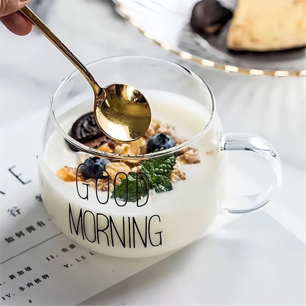 Kit Caneca Good Morning Copo Vidro Para Café Chá 400ml