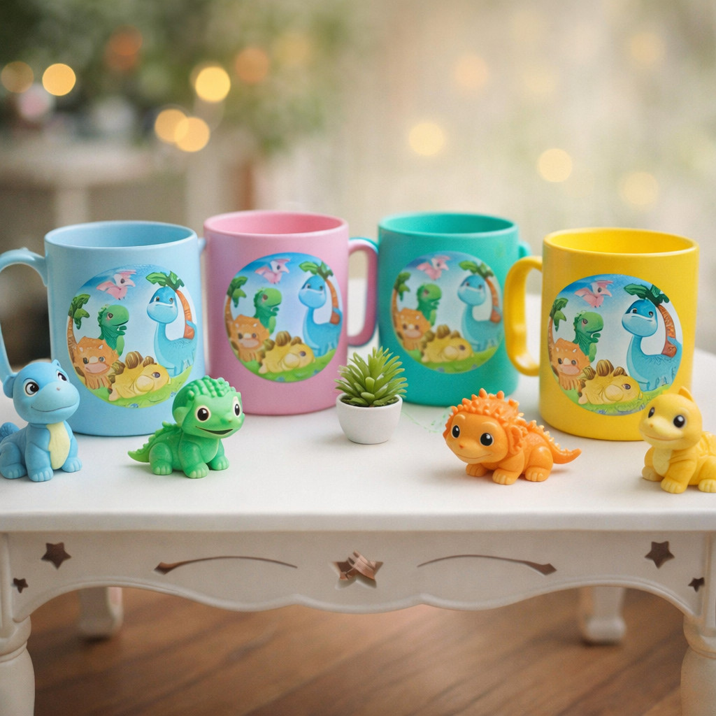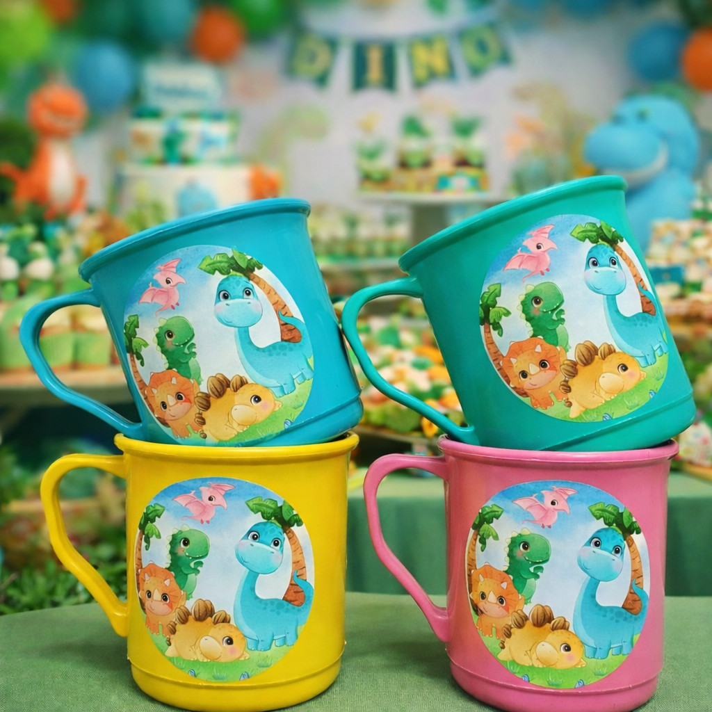 Kit Caneca lembrancinha dino baby plastico pronta entrega festa aniversario infantil desenho criança