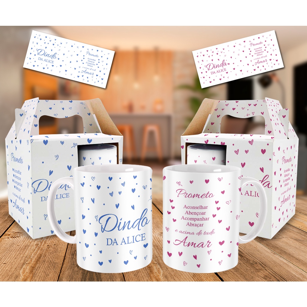 | Kit Caneca Personalizada Dindo e Dinda Batizado Padrinhos com Nome este produto | R$ 69,90 | — | 4.8/5 | 4 |