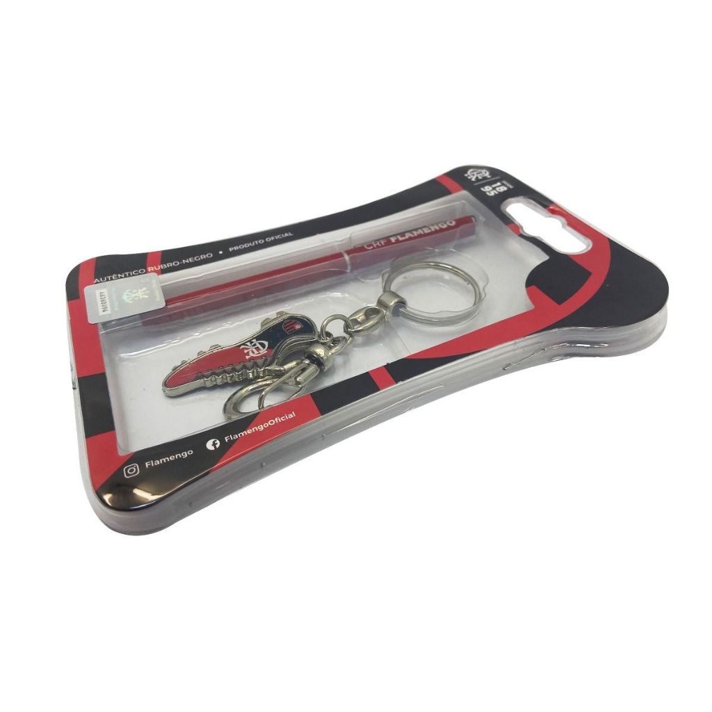 KIT CANETA E CHAVEIRO CHUTEIRA FLAMENGO OFICIAL