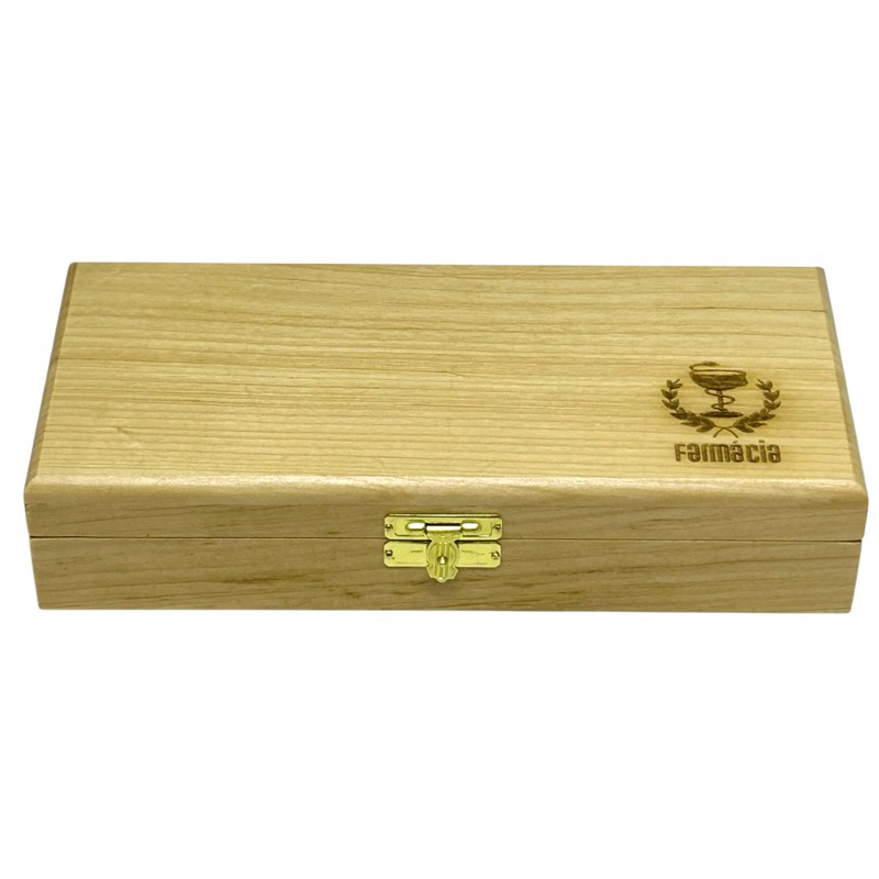 Kit Caneta Farmácia c/ Estojo Madeira Presente Formatura Farmacêutica+Nome+Carga Extra+Kit Presente