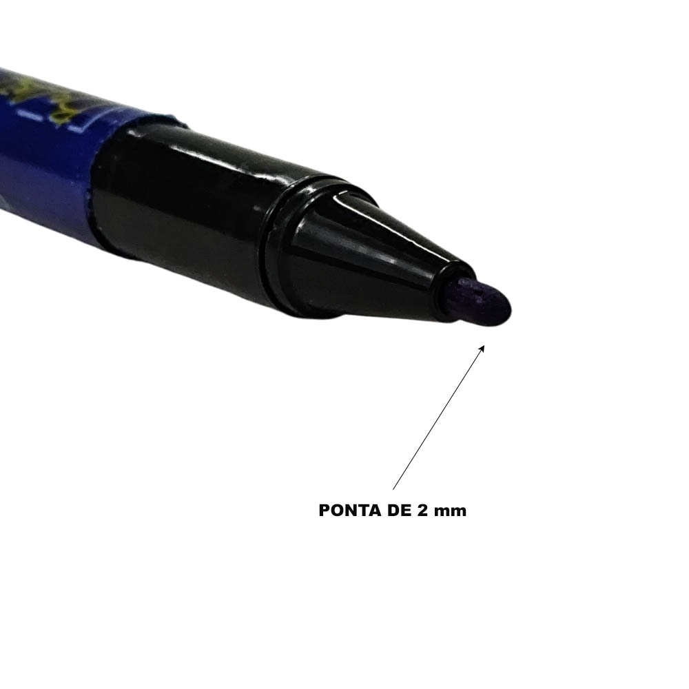 Kit Caneta Permanente Ponta Dupla Marcador Retroprojetor CD/DVD Plastico Metal 0.4mm e Grossa 2mm
