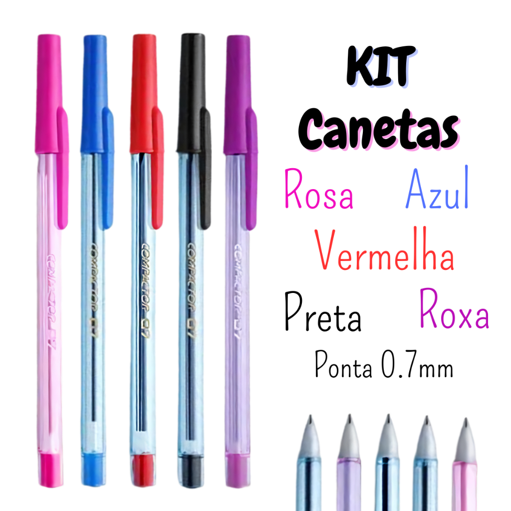 Kit Canetas Esferográficas Compactor Ponta Fina 0.7mm - 5 Cores