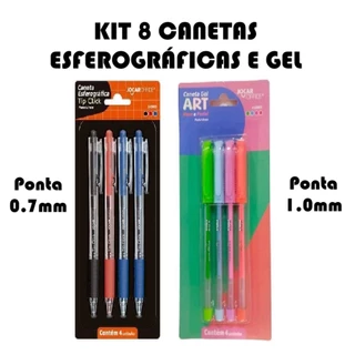 Kit Canetas Gel E Esferográficas 8 ou 4 Unidades Multicoloridas Escrita Escritório Escola Estudante