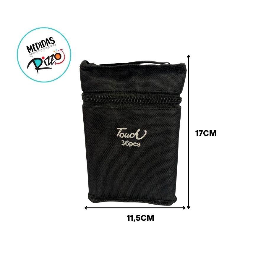 Kit Canetinhas Marcadores Para Colorir Touch Com Estojo Preto - 11,5x17x11cm - 36 unidades - Rizzo