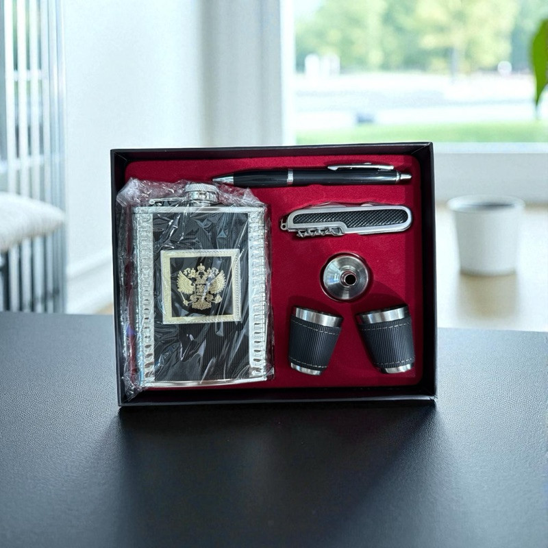 Surpreenda com este elegante kit presente masculino, perfeito para datas especiais como aniversários, Dia dos Pais, Natal ou para quem aprecia estilo e praticidade. O conjunto vem em uma caixa sofisticada, com interior em veludo vermelho, proporcionando um visual clássico e luxuoso. Conteúdo do kit: • 🥃 1 Cantil de 240 ml com acabamento premium e brasão decorativo • 🍸 2 Copinhos de inox com detalhe texturizado • ✍️ 1 Caneta metálica elegante • 🛠️ 1 Canivete multifuncional com abridor e saca-rolhas • 🔻 1 Funil de aço inox, ideal para enchimento do cantil sem desperdício • 📦 1 Caixa de presente rígida, com design moderno (preto, vermelho e prata) Destaques: ✔️ Ideal para presentear homens com bom gosto ✔️ Design clássico e moderno ao mesmo tempo ✔️ Produto completo — pronto para ser entregue como presente ✔️ Itens reutilizáveis e duráveis Medidas aproximadas da caixa: 27 cm × 18 cm × 5 cm